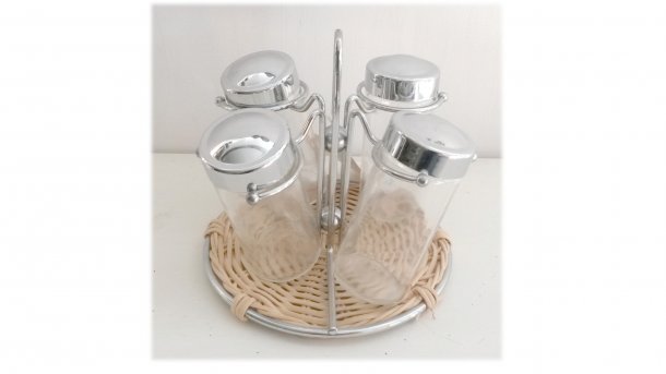 PORTA SPEZIE DA CUCINA IN FERRO E VIMINI