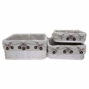 Prodotti :: CESTA IN VIMINI BIANCO CON TESSUTO CON FIORI COUNTRY RETTANGOLARE